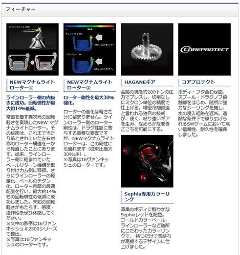 Катушка оснащена технологией Rapid Fire Drag, которая обеспечивает быстрый и плавный фрикцион. Корпус катушки выполнен по технологии CI4+, что обеспечивает легкость и прочность конструкции. Легкая рукоять из углепластика и облегченный ротор, как на топовых моделях 16 Vanquish, также способствуют общей легкости и балансировке катушки. Использование технологии ZAION и Monocoque Body не обнаружено в данной модели, но MicroModule Gear и X-Ship не упоминаются, вероятно, потому что они не входят в список технологий данной катушки, но Air Drive Design не упоминается. Однако, катушка имеет цельнометаллический механизм и 9 подшипников, что обеспечивает ее надежность и плавность хода.