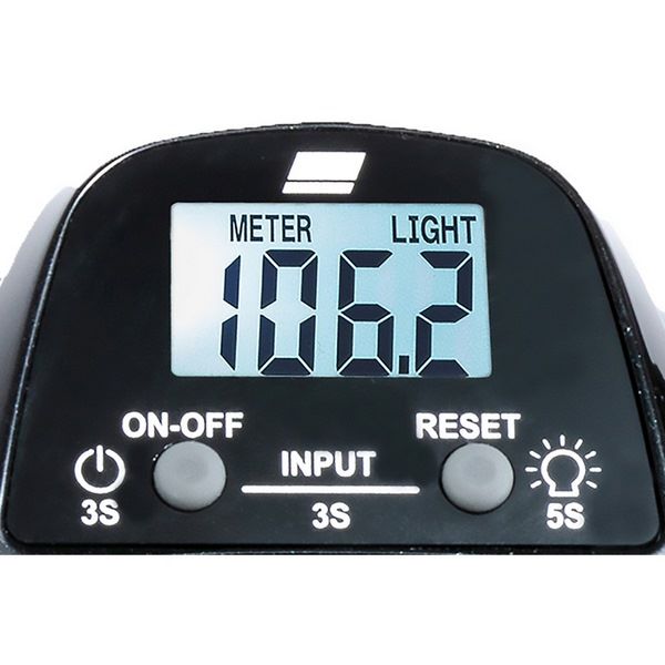 Модель MAX DLC BG H оснащена большой ЖК-панелью с подсветкой, которая обеспечивает простоту в эксплуатации и хорошую видимость. Управление катушкой осуществляется двумя кнопками: левой кнопкой включается и выключается питание, а правой кнопкой производится сброс (0 м установлен). Экран оснащен ярко-белой светодиодной подсветкой, что делает его хорошо видимым.