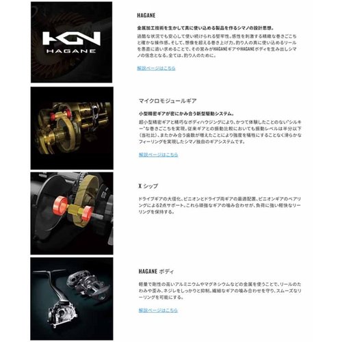Корпус катушки выполнен по технологии HAGANE Body — цельнометаллическая конструкция из алюминия, обеспечивающая жёсткость и защиту механизма. Внутри катушки используется система MicroModule Gear, которая повышает эффективность зацепления и снижает износ шестерен. Также, катушка оснащена технологией X-Ship, которая обеспечивает мощное и плавное включение фрикциона и повышает эффективность вращения.