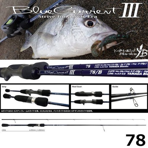 Yamaga Blanks BlueCurrent III 78 - это новинка 2024 года, представляющая третье поколение популярной серии спиннинговых удилищ BlueCurrent от японского производителя Yamaga Blanks. Данная модель относится к категории Power Finess и предназначена для дальнего заброса и использования с разнообразными приманками и оснастками, включая активные поплавки, бомбарды и пилкеры.