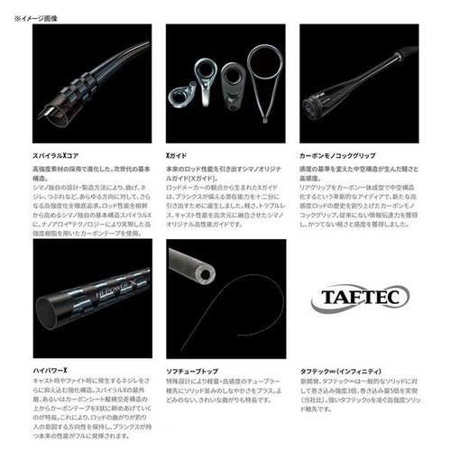 В конструкции удилища реализованы такие современные технологии, как Spiral X core, которая делает бланки легкими и прочными. Кроме того, используется рукоять «Carbon monocoque grip», обеспечивающая легкий вес и высокую чувствительность. Направляющие «X guide» уменьшают проблемы с запутыванием лески, что повышает эффективность рыбалки.