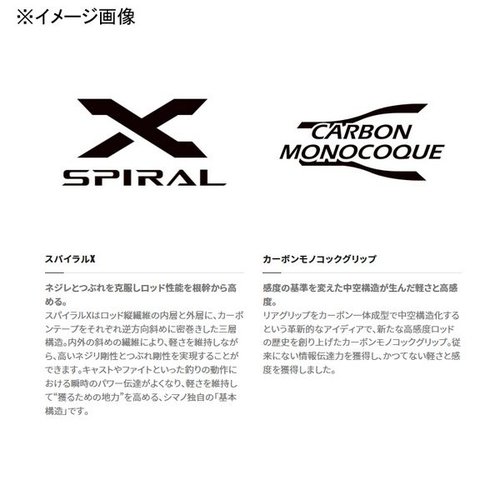 Данная модель оснащена инновационными технологиями, такими как Spiral X и High Power X, которые обеспечивают двойную Х-образную структуру, придавая удилищу одновременно легкость и мощность, сохраняя при этом высокую прочность и жесткость. Кроме того, удилище оснащено карбоновой монококовой рукояткой, которая способствует снижению веса и повышению чувствительности.