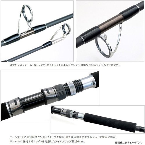 Рама удилища сделана из нержавеющей стали, а кольцо из карбида кремния. Для предотвращения царапания заготовки направляющей используется двойная обмотка. Ножка катушки фиксируется фиксатором типа Down Lock и надежно фиксируется двойной гайкой, что предотвращает самопроизвольное расшатывание.