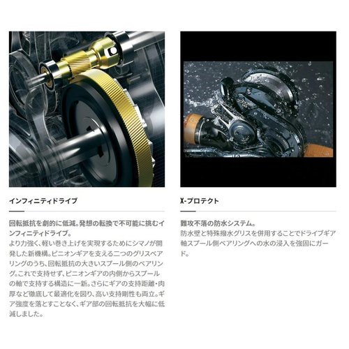 Новая версия серии мультипликаторных катушек Shimano Ocea Conquest, представленная в 2022 году, отличается от предыдущих версий 2015 года, 2020 Limited и CT, за счет установки инновационной системы Infinity Drive с микромодулем. Этот новый механизм, разработанный компанией Shimano, обеспечивает более мощную и легкую намотку. Конструкция катушки включает в себя два подшипника, поддерживающих ведущую шестерню, из которых подшипник со стороны золотника имеет большее сопротивление вращению. Кроме того, были тщательно оптимизированы опорное расстояние и толщина зубчатых колес для достижения высокой жесткости опоры. В результате, сопротивление вращению зубчатой части было значительно снижено без снижения прочности шестерни.