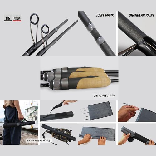 Конструкция удилища выполнена из высококачественных материалов, гарантирующих прочность и надежность. В комплект поставки входит жёсткий тубус для транспортировки и мягкий чехол для раздельного хранения частей удилища.