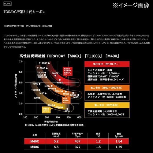Удилище оснащено карбоновыми вставками TORAYCA® третьего поколения, включая M40X и T1100G. M40X с твёрдостью 40Т обеспечивает чёткость ощущений и мгновенный отклик, что позволяет рыбачить с точностью и совершать забросы на максимальную дальность с минимальными усилиями. T1100G с твёрдостью 33Т усиливает конструкцию, придавая ей среднеэластичные свойства, что делает удилище удобным в использовании и способным выдерживать мощные броски рыбы.